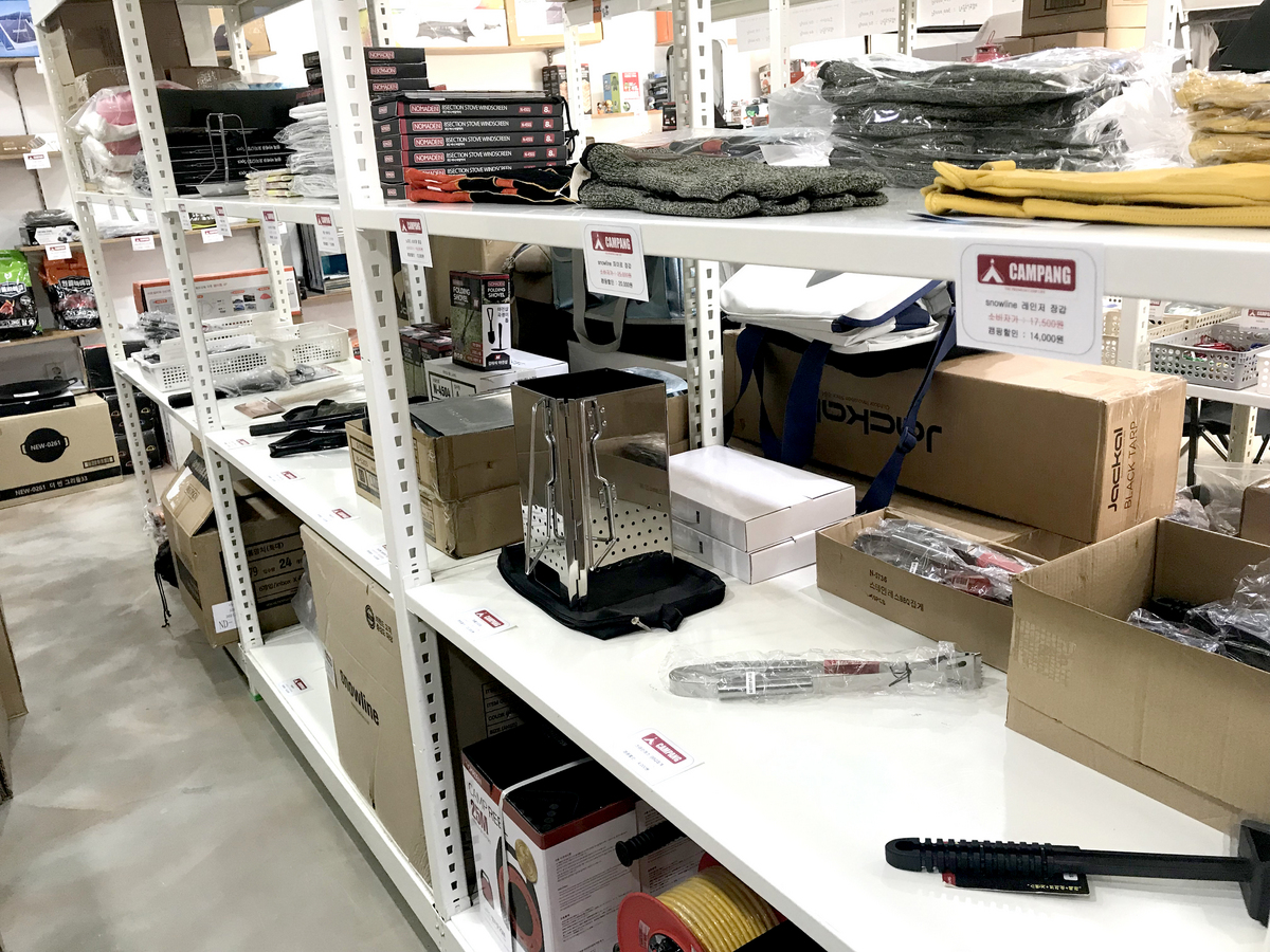 캠팡 오프라인 매장에서는 각종 캠핑용품을 할인판매 하고 있습니다
